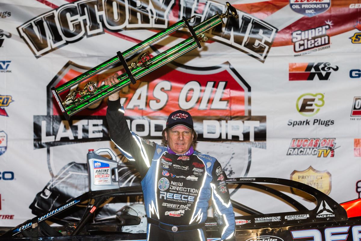 The winner’s car is sponsored by New Direction Ag, Reece Monument Company, Sweet Manufacturing, Sorbera Chiropractic, Penske Shocks, Valvoline, All-Star Performance, Cross-Fit by Overton, Petroff Towing, and Catspot.