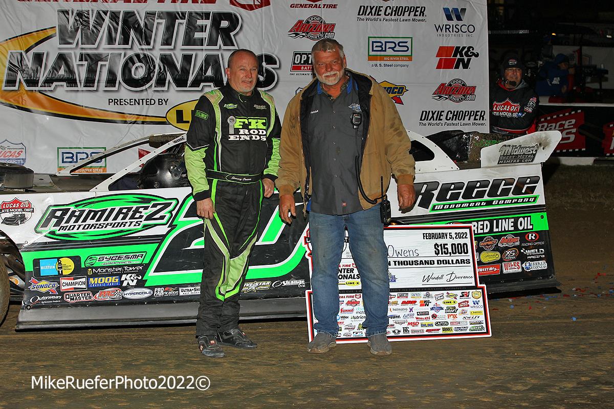 By Lucas Oil Late Model Series PR (Lake City, FL) -- Putting aside a frustrating start to the 2022 season, four-time Lucas Oil Late Model Dirt Series National Champion, Jimmy Owens rebounded on Saturday Night. Celebrating a birthday just two days ago, the 50-year-old Tennessee native earned a hard fought $15,000 victory in the General Tire Winter Nationals Presented by Line-X Saturday night event at All-Tech Raceway.